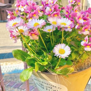 さっきの寄せ植えに入れていたイングリッシュデージー🌸 一年草だけどこぼれ種でどんどん増えるらしいです(*ˊˋ*)