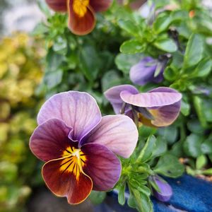 11月8日にお迎えしたビオラ フロステッド・チョコレート。 買ってきたときに切り戻して、 やっと咲きました😂💠長かった~ どんな色だったか忘れていました🤣 2枚目 去年育てていたものから種を取っていて撒いてみたら発芽したので育てました🌱10/9から約4ヶ月です💠 大好きなデイジーです💕 3枚目 球根から育てたラナンキュラス。 幾つか育てている中で一番乗りで 蕾を発見! 来週はすごい寒波が来るので、 来週は玄関に移動しようかなぁ~🤔 今日は長女が行く事になった学校に行って 説明会と体操服や体育館シューズの 注文に行ってきました。 その前に、北野天満宮にお礼参り。 朝早くから出掛けたので時間が余ってしまい、 学校には一番乗りで40分も待ちました😅 🏷️(祝)青い花マニア7周年 おめでとうございます🎉✨😆✨🎊 ちょっと青みに欠けるかな?🤔 次はもっと青いの探します😅