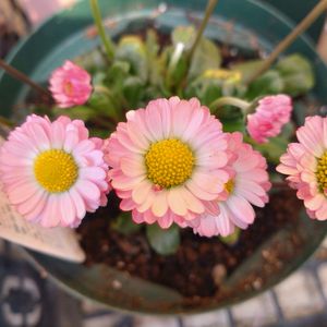 今日のお花💐「デージー」🏵️ 寄せ植えの中の「イングリッシュデージー ロリポップ」さん💗 可愛く咲いてくれています🤗💕 寄せ植えも全体的にもりもりになってきて嬉しいです🥰