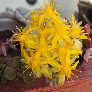 今日は、あいにくの雨☔️~曇り空☁️ 薄化粧🌵 セダム属 雨*☂︎*̣̩⋆̩の日は、部屋の中で… 多肉ちゃんを見る楽しみ⸜( ´͈ ᵌˋ͈)⸝~♪ 薄化粧の花が星꙳★*゚の形に見える🎶 キラキラ光る✨✨星のように 満開に近い花✨✨黄色の花を 咲かせて癒して๓´˘`๓♡くれます💞🍀 美しくキラキラ輝いてる~~✨😊💓
