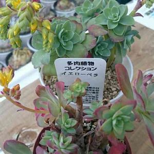 ■イエローベラ 先日「イエローベラ」をお連れしました そして植え替えました 今夜雨予報なので雨で給水と微塵を流します イエローベラってなんだろう… 一緒に写ってるのは ■Sedum セダム ・Palmeri パルメリー 薄化粧 クリソツです✌