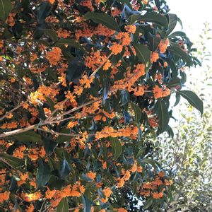 おはようございます😃 先日のミノムシが🐛いた所は蕾だったようです。 香りがするので上を見上げると満開でした🌼🌼🌼