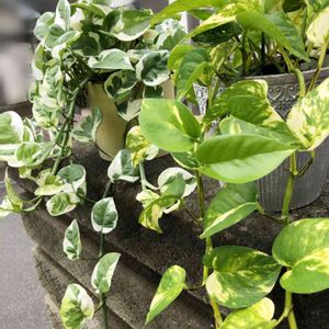 🌿ポトス🌿 昔っからポピュラーな観葉植物 誰かがくれたりでいつも家にあるイメージ 興味が出たり、忘れたり… 今年は、なんかスポットを当てたくなり、お外で大きくしてみました 個性的な斑入りが綺麗になって枝垂れて来ました ポトスは、非常に柔軟な観葉植物で、簡単に思い通りに仕立てられる優秀な葉っぱちゃん🌿 はてさて、もうすぐおウチの中に入れるには枝垂れすぎ! どうやって仕立てるか🤔 1️⃣中央もっさり型 2️⃣支柱を立てて上向き型 3️⃣このまま小さな枝垂れ型 4️⃣小分けの水耕栽培 うーーーん!! どれも全部出来るなぁ💡