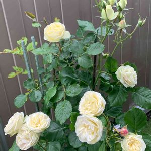 何とも言えないこのクリーミーな優しい色合いのバラ。 雨に当たると花びらの縁が傷んでしまうので軒下で管理していたら春にたくさんの花が咲きました🌹