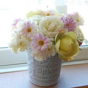 🌼本日のおうち花🌼 🌹クリーミーエデン四季咲きといえども未だに休眠できず咲いております。春にまた沢山咲いてもらえるよう剪定し休眠させてあげます💤 白とピンク混じりの可愛いスプレー菊も間延びして垂れてきてしまった為切り詰めてあげました😌