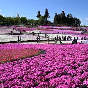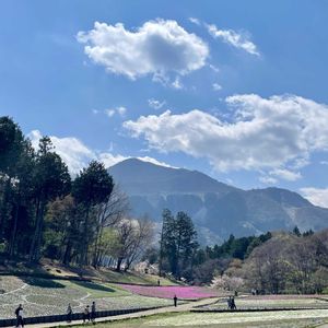 こんにちは☀️ 秩父の羊山公園「芝桜の丘」に行きました。 桜🌸が咲き 芝桜も咲き始めていました。 4/5から芝桜まつりが始まります。ちちぶマルシェの準備が進められていました。順次咲いて行くように植えられているので、まだ三分咲きぐらいでした。 武甲山が雄大です。