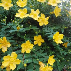 大輪金糸梅✨ 別名ヒペリカム・ヒドコート🧡 今年は剪定が遅れてしまい、カメラをひくと丸坊主状態で、いやはやお恥ずかしい限り......💧