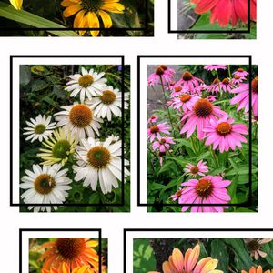 我が家のエキナセアたち🤗🎶 ① 種から庭中に増えました✨🧡❤️💗💛🤍✨ ② 暑さ寒さに強く花期も長いので、八重咲きも迎えてみました🥰 ③ こちらの2種はちょっぴり繊細らしく、2年目なのに小ぢんまり咲いています✨🤍💚🩷💚✨😆
