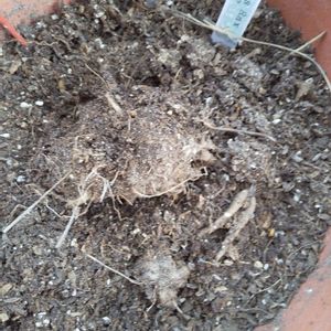 ラナンキュラスラックス、アネモネたちが発芽し始めました。 9月中頃に冷蔵庫内で水苔にくるんで乾燥から戻した球根を充分涼しくなってきた10/16に植えたところ、ミネルバ、メリッサ、グレーシス、アリアドネは発根発芽が確認できました。 水やりなし、植えっぱなし組のアリアドネ、ティーバ、リュキア、エリス、アネモネアンアリス(掘り忘れ)、ヘスティア、不明の小さい欠片球根も10/16から水やりを再開して一応発根発芽を確認できました。 なんですが…冷蔵庫組のアウラが出てこない…。 球根を掘り出してみると、少しカビてました。 とりあえず、洗い流して腐った部分を取り除いて、再度埋め戻しました。 今年はほんのひと欠片からでも発芽点さえあれば発芽することがわかったので、球根が完全に溶けるまでは残しておこうと思います。 この2~3年で、アリアドネやエリスの株数が増えたので、鉢の数がスゴイことになっています。