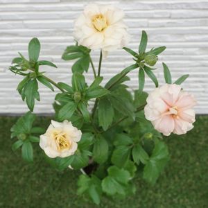 ラナンキュラスラックス アリアドネ 秋に植え忘れて1月末になってから球根を植え、3月に入ってから発芽した株です。 まだまだ蕾もあり、元気です。全体の花数は遅かった分やはり少なめです。 3~4月に咲いていた親株たち(どれが親株か微妙ですが)とはだいぶ様子が違います。 咲き進んでもヒラヒラ感がなく、八重にまとまった状態です。 2月頃に開花した花がちょうどこんな感じだったので、シーズン始まりと終わり頃の開花姿がこんな感じなのかもしれません。 この株は今年は掘り上げず、花後はこの鉢の状態のまま休眠させようと思っています。