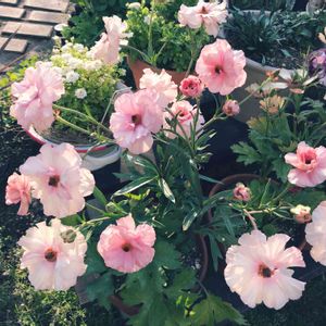 おはようございます〜♪ *ラナンキュラス ラックス アリアドネ* 光沢のある花びらとゆらゆら咲いてる姿が可愛らしいです バックを日影になってる生垣にしたら黒くなって、優しいピンク色が引き立ちます💖 半八重咲、ラナンキュラスには珍しいスプレー咲きは魅力的です✧︎*。 先日お迎えしました🥰