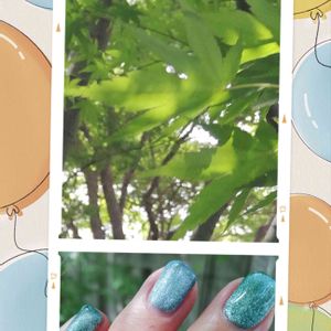外出先にまだまだもみじが綺麗 私のネイル💅のテーマが【四万十川に魅せられて】でグリーン&ブルーで✨✨です💚