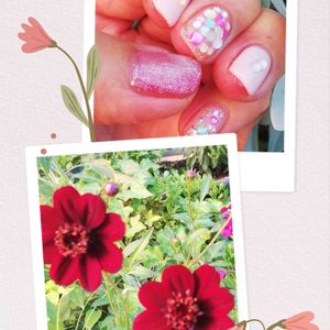 チョコレートコスモスとネイル💅をコラージュにしてみました。 この天候をみてテーマ【小春日和🌸】 秋なのに昼間は暖かいですよね(⌒‐⌒)🌸🌸