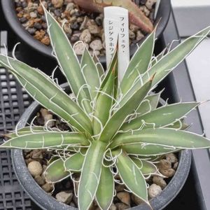 おはようございます☔ 雨が降って肌寒いです アガベ☆フィリフェラシジゲラホワイトストライプです😊