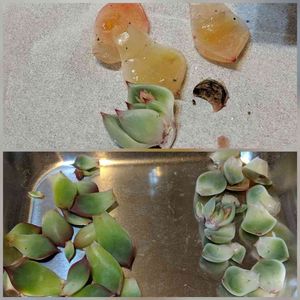 🚨緊急事態⚠️ Σ( ̄ロ ̄lll) ショック アホです。 ヤっちゃいました。 少しずつ色ついてきた 姫秀麗? 姫愁麗? 姫秋麗? (どれが本当のお名前なの?) 丼を作る予定が… バラバラ事件発生です‼️ 鉢をひっくり返して 皆バラバラ~ 自分に腹立ってイライラ😒💢💢 全部拾ったのには疲れた(笑) だけども、ハート♡の葉っぱを見つけてテンション上がりましたよ⤴️⤴️ でもそのあとぽいぽいプランターに皆さんポーイしました(゚Д゚)ノ⌒・ 皆さんちゃんと根付いてくれるかな…