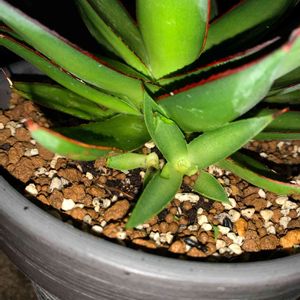 アガベ ロマニー 写真中央に子株が2つあるのがわかりますか? 何者かに成長点を食べられてしまいました😭 早く分ければよかった😭 これは再生できるのか⁉️ 親株は被害なしでした