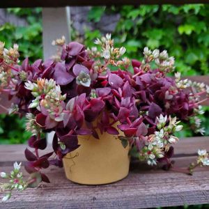 今年もカワイイお花が咲いてくれました💗🤍💗 赤紫の葉茎に白い小さなお花がたくさん咲きます💟 大好きなのです♡♡♡(*´∇`*)♡♡♡