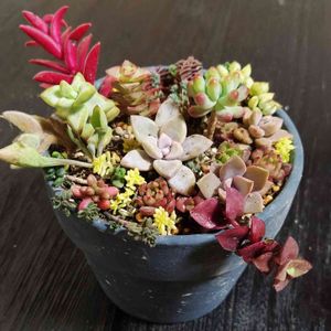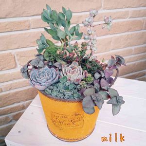 小苗集めて久々に寄せ植えた😊 適当にぎゅうぎゅうに詰めちゃったから育ってきたら大変なことになりそう😳