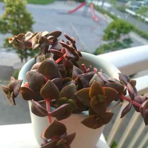 本当は寄せ植えの手前で前に垂れるはずだったのに、手直しするうちに、いつの間にか正面が変わってしまって後ろになってしまったジンガールブラ。 そういうことってありません? 私だけか〜😅 久しぶりに正面に向けてみると、紅葉と新芽の緑がきれいでした😊 どうせ後ろになっちゃうから、垂れているところをカットして増やします(*´ ˘ `*)