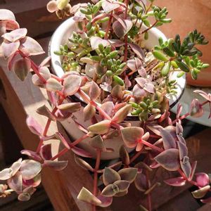 ウチにはこんな子もいるっちゃいる シリーズ第17回 クラッスラ ペルシダ 'ジンジャー ルブラ錦' Crassula pellucida 'Jinger Rubra' ジンガー ルブラとも ジンジャ ルブラとも 色々呼ばれてます リトルミッシーの大きくなった版のイメージ 縁取りステッチも同じです どピンク最盛期 強い子でモリモリ増えます 増えすぎて困ってます