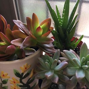 おはようございます*:ஐ 昨夜は激しい雨が降って、今朝は電車も止まっていましたがようやく動き出した様です🚃 軒下の多肉達もびしょ濡れ💦 少し前にHCで見つけたグラウコフィラム❁︎ お水をあげたら群れちゃいそうなので、そっとしてあります😊