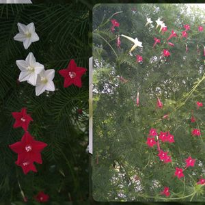毎年こぼれ種から芽生え🌱 支柱とネットを設置 伸びるツルを絡めてありました 星咲きルコウソウ🕯❤️🥰❤️🌿 咲き始めました 2025.8-68