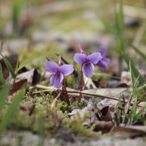 シハイスミレ スミレ科スミレ属 多年草 花期3〜5月 和名シハイスミレは「紫背菫」の意で、葉裏が紫色を帯びることによる。 本州(東北地方南部以西)、四国、九州に分布する。 雑木林や森林の林縁などに生える。 初めて見たスミレなので、自信がありません。間違っていたらご指摘願います。