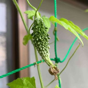 ゴーヤの様子。先日花を咲かせました✨ ゴーヤは元気なのですが、他の庭の子達が虫の餌食に... ... 思った以上に虫の食害が酷かった😱管理難しいぃぃ!!!
