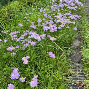 はっきりとした名前が未だに分かりません。地下茎で増えていくシオンの種類だとは思います。 見分け方って難しいです。 ボルドー菊が有力候補のようです。