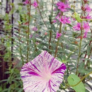 プランターの朝顔が伸びすぎてミソハギに絡んでいました