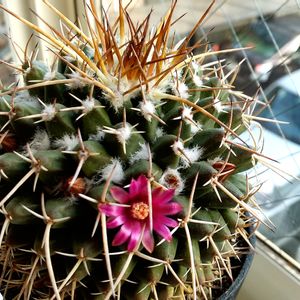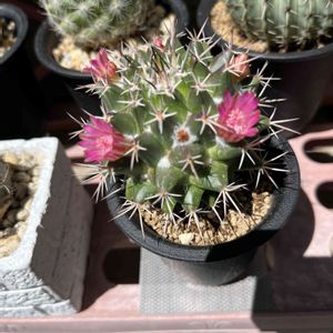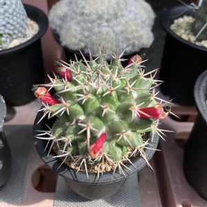 幼株から我が家にいるこの子🌵 マミラリア マグニママ 夢幻城 一昨年寒波に当たりすぎて弱ってたのですが復活! 蕾が出てきました🌼