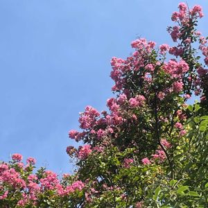 8月16日 今日のお花 ❤♥💜🤍🌿サルスベリ 青空を背景に入道雲のようにもくもくと花房が湧き出る。花は6弁で花びらの先は縮れる。 サルスベリは中国原産ですが、日本では古くから親しまれています。江戸時代には寺院や庭園に植えられ、その美しさが広く知られるようになりました。サルも木から落ちるほど、すべすべした樹皮。 花が長い間咲くことから「ヒャクジツコウ(百日紅)」という別名もある。 花期 7〜9月 生育地:庭、公園、街路樹 🏷️土曜日はお空の発表会 🏷️青い空 🏷️土曜日は紫の花