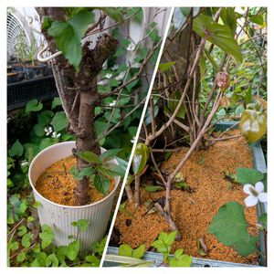 吾輩は根っこである細根はまだ無い〜チャレンジ中の椿は根伏せというか腕程の根が伏せて有り落葉しては新葉が出てはを繰り返す事三度サクランボは親指より少し太い枝他にサルスベリのコブもカルスが巻いて発根するのか夏越し出来るかな