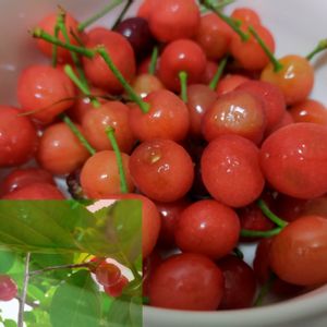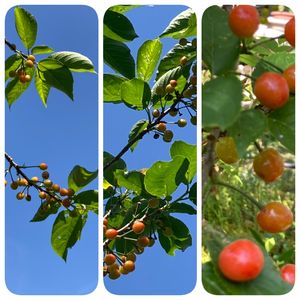 暖地サクランボ だんだん色付くにつれ期待と不安が❣️😖 的中しました💦 もう少しで口に入ると楽しみにしてた朝、突然ムクドリの群れが飛び立ち、軸だけ残していきました😖😫😢