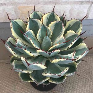 こんばんは! 蒸し暑い日が続きますね! アガベ:吉祥冠中斑 少し窮屈になったので、植え替えました!