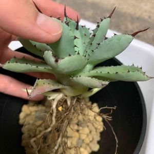 アガベの根の張りにはいつも驚かされます。撮影後は絡まった根をバッサリと切りました。
