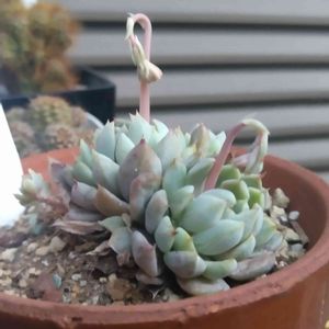 おはようございます( ˶˙ᵕ˙˶ ) こちらは寒いですが快晴です☀️ ホワイトラインさんに花芽がつき、もうすぐ咲きそうです🌸 うちでは初めてのエケベリアのお花を見るので、咲くのが楽しみです☺️⸝⸝ 《追記》 コメントで教えていただき気づきましたが、この写真で100pic目でした📷 みなさんいつもありがとうございます(* ᴗ͈ˬᴗ͈)” これからもよろしくお願いいたします🙏 一眼レフで撮ってみたシリーズ エケベリア ホワイトライン 花芽