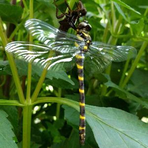 おはようございます(^.^) ダリアの茎に🎵 生まれたてのトンボ💕 羽根乾かしてるんだね(*^^*)