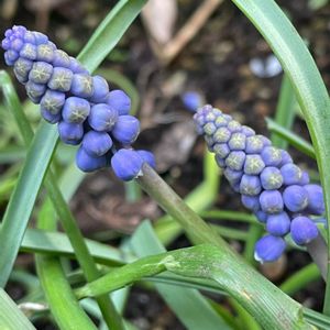 ムスカリさん やっとこのお姿が見られて 眺めては可愛い〜(,,>᎑<,,)を繰り返しています♡ 最近は夜に雨が降ることが多く、 雨粒もついてツブツブが増えています💧‧˚₊*̥ もう1つのダブルビューティーさんはまだ頭が見え始めたところです(´•ᴗ•ก)
