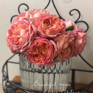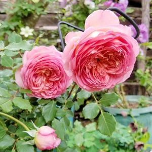 薔薇ジュビリーセレブレーション イングリッシュローズ 昨日の朝つぼみが開きかけで、今朝にはこんなに咲いていました。 すばらしすぎるフルーツ香があたりに漂ってます😆😆 花首が長くて細いので花が咲くとうつむきがちになり、樹形がすこし暴れます。ウチでは花首支えのような黒の金具を使っています🙋