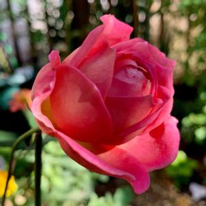 蕾だった時は🍑桃の様だった 🌹ジュビリーセレブレーション 無事に咲いてくれました 暑いので日陰に置きました ゆっくりと咲いていて欲しい