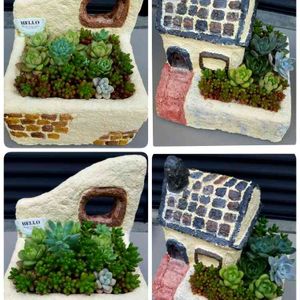 モルタル造形のお家 ちょっと手直ししました 多肉たちは元気です🎵