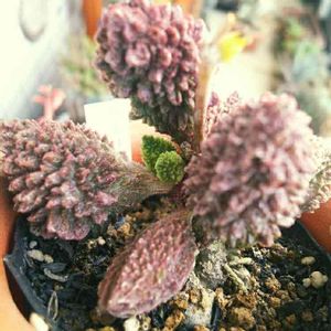 アドロミスクス・レッドヘレーの新芽✨ 写真じゃ見えないけど、5つ出てきました! 最初は緑色で、だんだん赤く変化します。