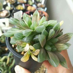 オブツーサ錦✨ 冬、室内で徒長しちゃって、 去年、植え替えをサボったので、去年の子と今年の子がひしめきあってて、 早く植え替えろ‼️ と言ってくる株...😅