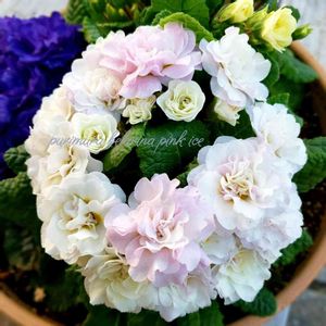 おはようございます。 ひんやり肌寒い朝になりました。 プリムラベラリーナが咲き始めたのですが、 苗を4つ買い、そのうち2つは ピンクシャンパーニュ、 ピンクアイス、 とピンク系のつもりだったのですが 咲いてみると...私には白に見えます( ´_ゝ`) これからピンクに染まっていく品種なのかな?💧