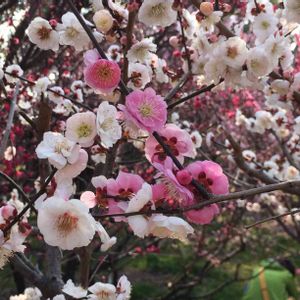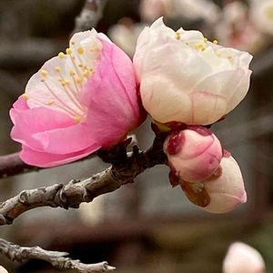 うちで一番遅咲きの梅 「思いのまま」って 名前がいい♡ 咲き分け種のはずですが 今年は白とピンク はっきりしませんねえ