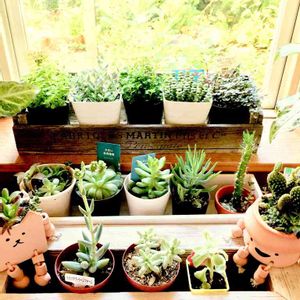 ささやかな 小さな小さな私の多肉コーナー❤️ セダムも🌵も 加わって 外の暑さを逃れ ほっと ひと息💕