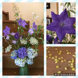 キキョウの花弁が6枚ある! クサレダマの花がハラハラと散って、星🌟がこぼれたみたい🌟
