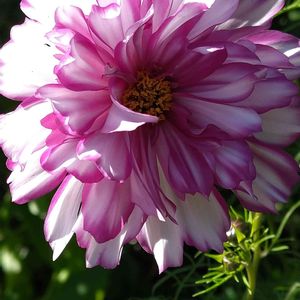 八重咲きのコスモス 背に光を受けて…… 来年は八重のコスモス タネGETしなくちゃ💪