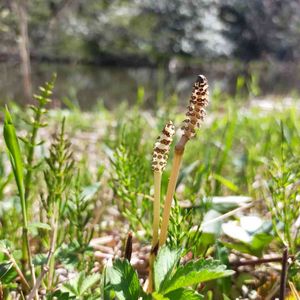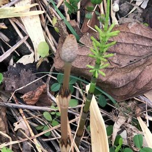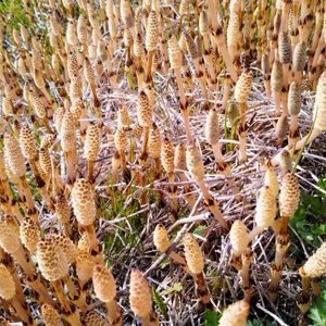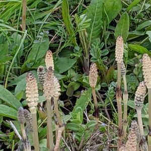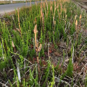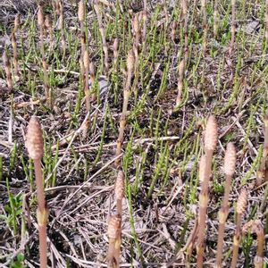 土筆からスギナになる途中段階のものを一生懸命探しましたが見つからず…それもそのはず、土筆が枯れたあとスギナが出てくるのですね😮💦 『…地下茎から地上へ出る胞子茎と栄養茎に分かれ、栄養茎をスギナ、春に出現する胞子茎をツクシ(土筆)と呼ぶ。 …ツクシが地上から生えて、繁殖のため胞子を放出したあとは、胞子茎は枯れてしまう。その後同じ場所に栄養茎(スギナ)が生える。』 ウィキペディアより引用 2021.3.24撮影